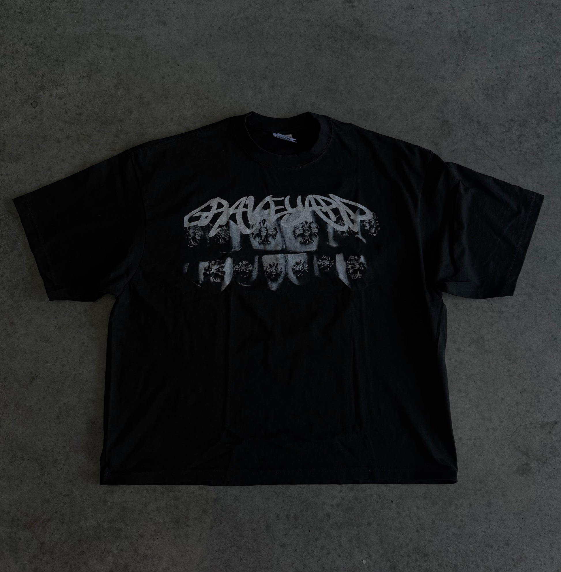 Bring darkness to the forefront with the GRAVEYARD “Fanged” Tee, featuring a bold deathcore-inspired graphic and high-contrast monochrome artwork. The design showcases the signature GRAVEYARD lettering layered above a set of distressed, skull-etched teeth for a gritty, underground aesthetic.