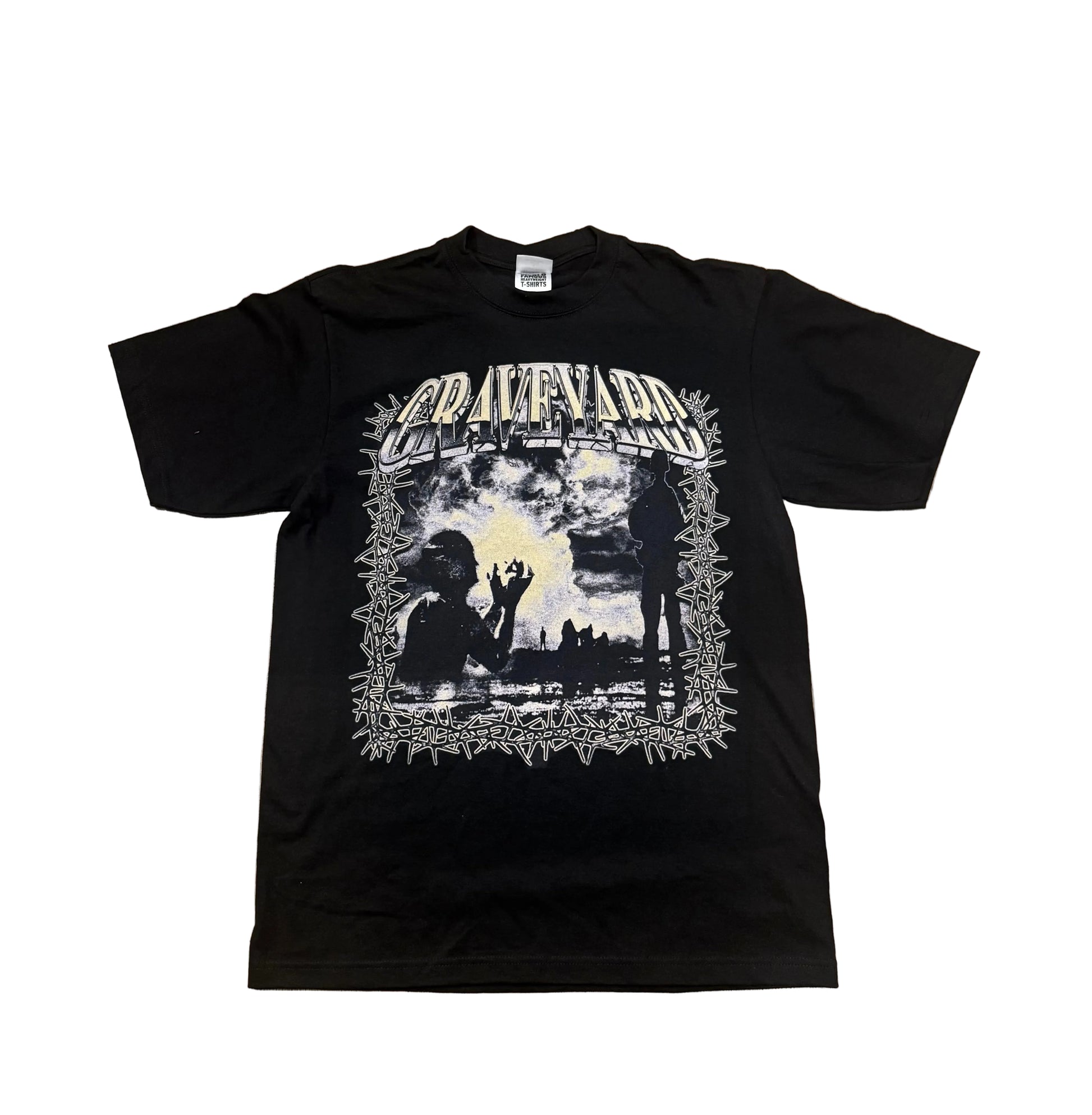 Built for durability and presence, the Graveyard T-Shirt is printed on a Shaka 7.5 oz Max Heavyweight tee, known for its premium feel and long-lasting structure. Featuring a bold graveyard-inspired graphic with a gritty, high-contrast finish, this piece delivers a raw aesthetic that stands out while staying timeless.
